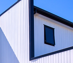 Nu-Wall’s E100 was the profile of choice for this building, because of its strong vertical lines that further highlight the shapes of the building. Powdercoated aluminium offers great durability and low maintenance, which is an important feature for a beachside home on the wild West Coast.